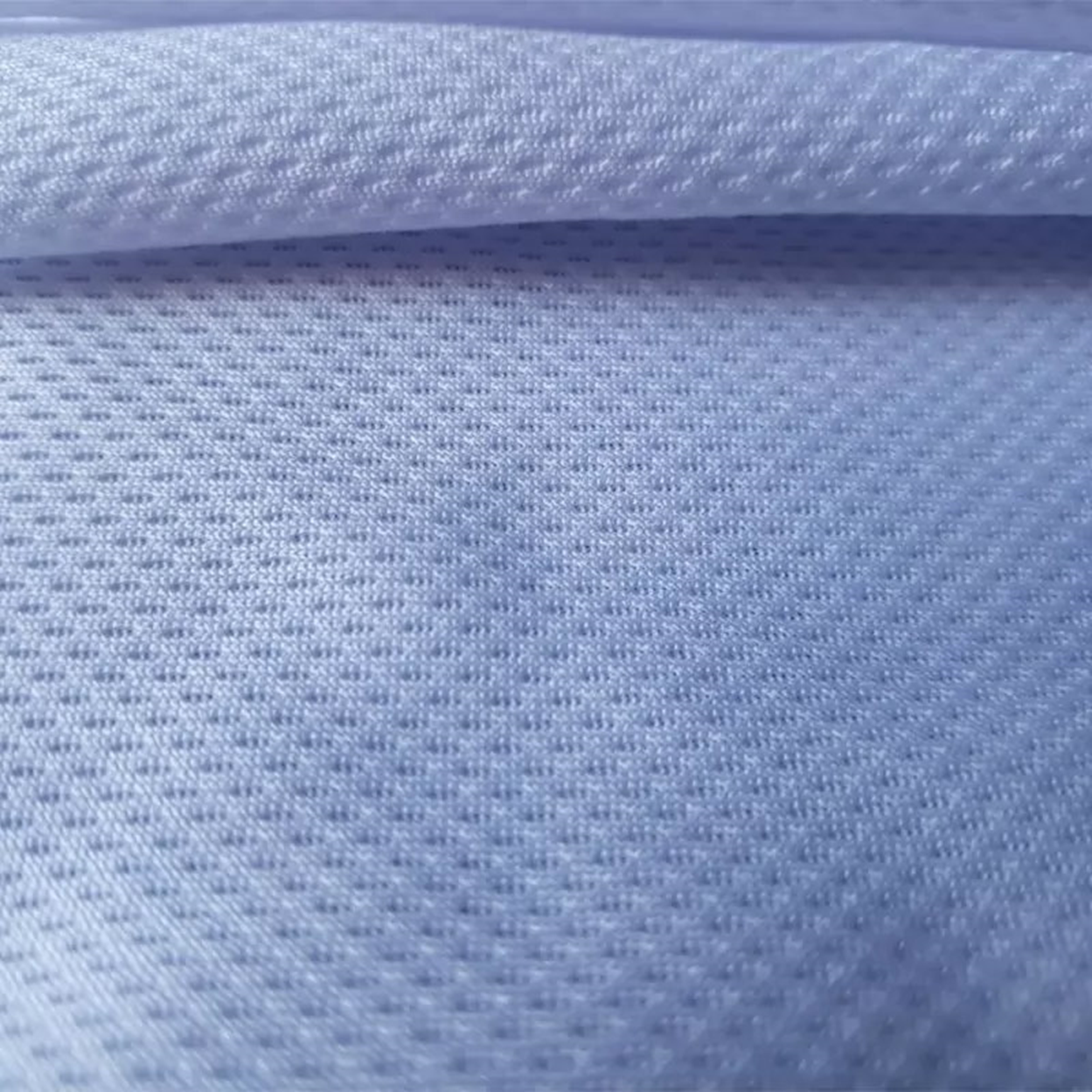 A medium-weight, open-weave fabric designed to keep the wearer cool and dry. Look and feel similar to trimesh but with minimal stretch. 143gsm 100% polyester Ideal for panelling in singlets, polo shirts and basketball side panels